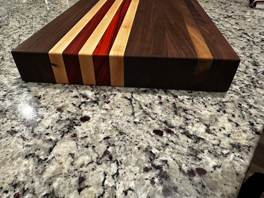 Edge-grain Cutting Board 15x11x1.5 (Walnut, Maple, Purpleheart)