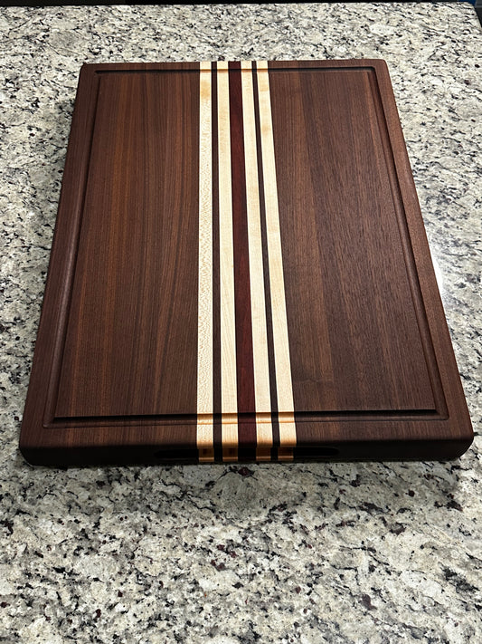 Edge-grain Cutting Board 15x11x1.5 (Walnut, Maple, Purpleheart)